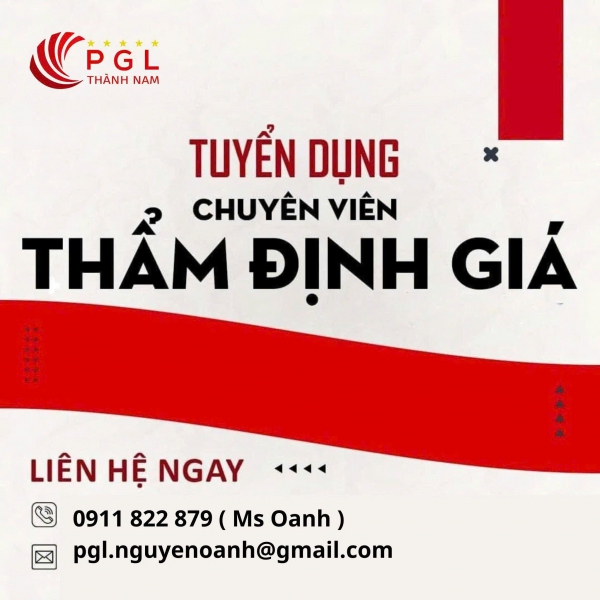 CÔNG TY CP THẨM ĐỊNH GIÁ PGL THÀNH NAM - TUYỂN CHUYÊN VIÊN THẨM ĐỊNH GIÁ